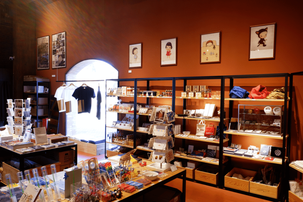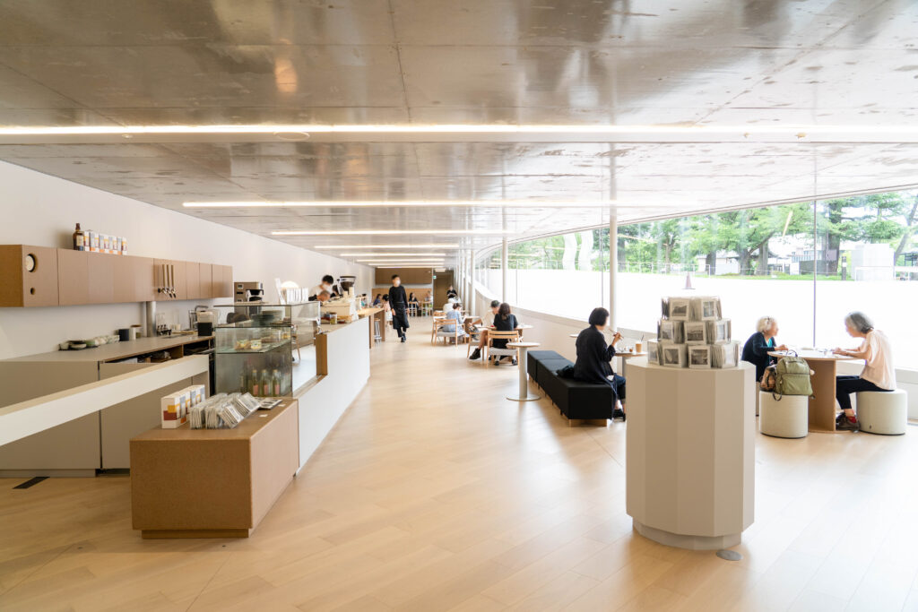 咖啡館提供使用當地食材製作的午餐、輕食與甜點,窗外還能欣賞藝術裝置景觀,讓人感受到藝術不僅存在於展廳,而是融入城市的日常生活。旁邊的商店則販售美術館原創商品、十和田特色工藝品與在地產品,讓訪客能將青森的藝術記憶一併帶回家。