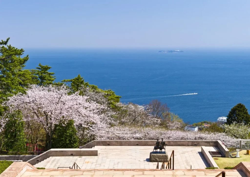 MOA美術館位於熱海高台,視野可以俯瞰整個相模灣。立足於此,不僅能遠眺初島與伊豆大島,天氣晴朗時,視線更可越過海峽,觸及房總、三浦與伊豆半島的輪廓線,自然景觀本身就是迎接訪客的序曲。