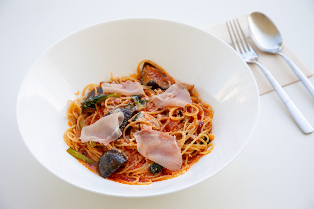 位於美術館內二樓的café Charité的設計延續了坂茂標誌性的建築語彙,從牆面、吧台到椅子都大量使用紙管結構,營造出既簡潔又溫暖的空間氛圍。餐廳提供午餐與咖啡輕食,料理特別強調大分在地食材,例如來自久住高原自家農園的新鮮蔬菜,以及九州特色食材如豐後牛等,呈現兼具健康與地方風味的餐點。