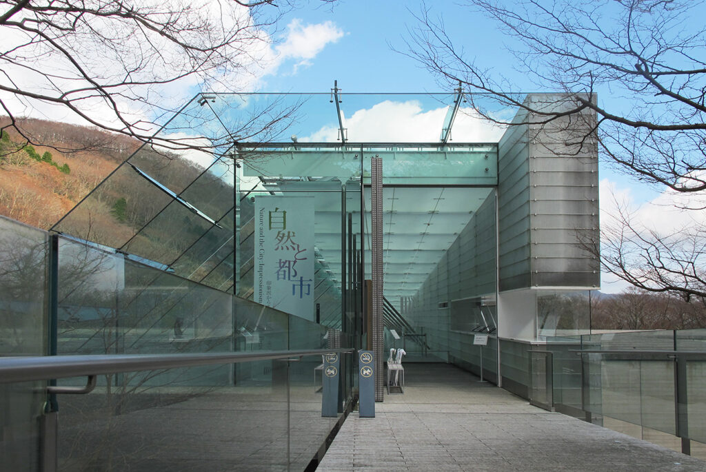 美術館建築以玻璃和混凝土巧妙融合於森林山坡之中,建築設計的一大特色,是將大部分空間設置於地下。讓自然光線與周邊林木景色融入空間之內,展現「藝術與自然相互交融」的美學風貌。館外環繞的自然步道與雕塑空間更延伸了藝術體驗,使訪客能在欣賞傑作之餘也感受箱根山林獨特風情。