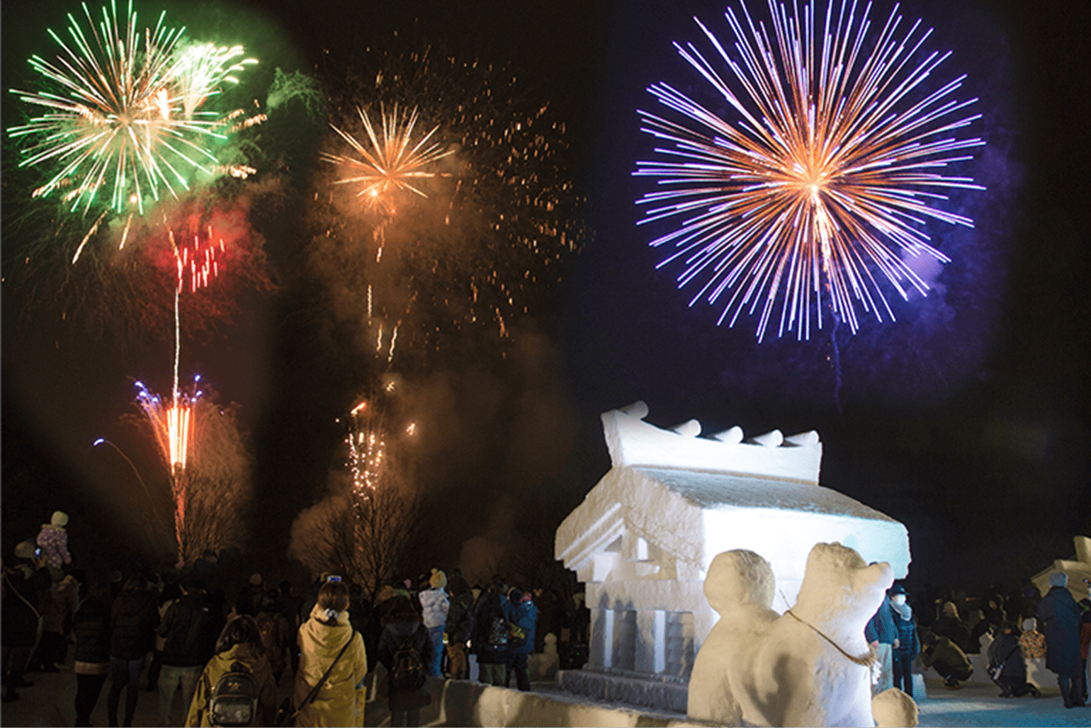 起初的犬子祭多在家庭與村落內部進行;到了近現代,尤其是戰後與昭和年代,祭典開始以更公開的面貌出現在社區活動中。雪堂從門前的小堆,變為街區或廣場中的一座座雪小祠;米粉犬的形態被保留下來,但也出現了更多以雪雕或手工藝表現的犬像。現代人的參與方式也變多:從家庭供奉到社區共建、從孩子的遊玩到遊客的到訪,犬子祭在形式上有所擴展,但其核心——以“犬”表達守護、以燈火驅散冬夜不安——始終未變。