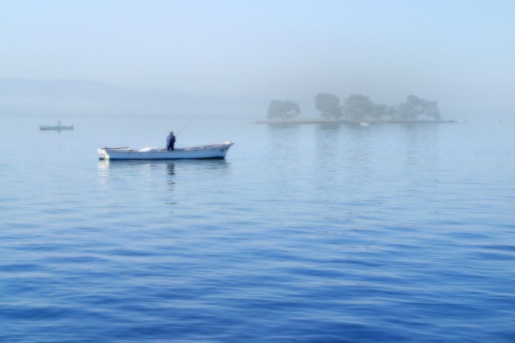 參拜完出雲大社,島根的冬日依然有許多值得探索的景致。宍道湖在冬季格外寧靜,是日本重要的濕地保護區,也是候鳥遷徙的絕佳棲息地。清晨或傍晚,湖面常被薄霧籠罩,水光與煙波交織成柔和的灰藍色。成群的斑嘴鴨、綠頭鴨,以及高傲的天鵝在水面嬉戲、飛翔,偶爾掠過湖面的寒風帶起細微漣漪,整個景象靜謐而富有生命力,仿佛時間在這一刻慢了下來。湖畔的步道上,偶爾有人停下腳步,靜靜注視著飛鳥掠過水面的弧線,呼吸間感受到冬日的清冷與寧靜,心神也被自然的節奏溫柔地撫平。