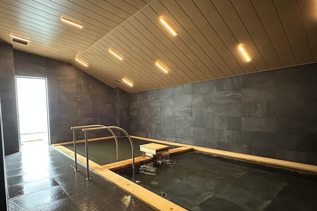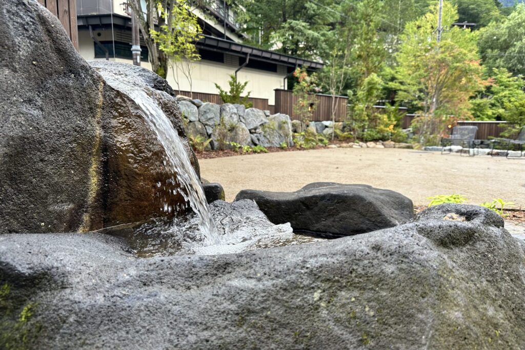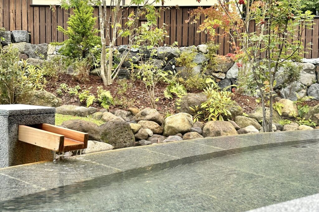 露天風呂則以奧飛驒常見的「雪之迴廊」為設計靈感,採用上方開孔的構造,讓自然光灑落其間,是在其他溫泉中少見的空間體驗。