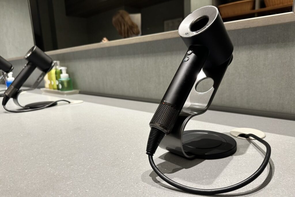 女性專用的更衣室內,備有深受女性喜愛的 Dyson 吹風機,以及「界」原創備品,貼心完善。