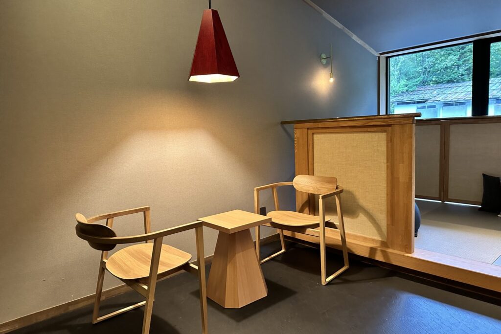 泡湯之後,可前往設有優美曲木座椅與柔軟抱枕的「湯後休憩區」,悠然稍作歇息。