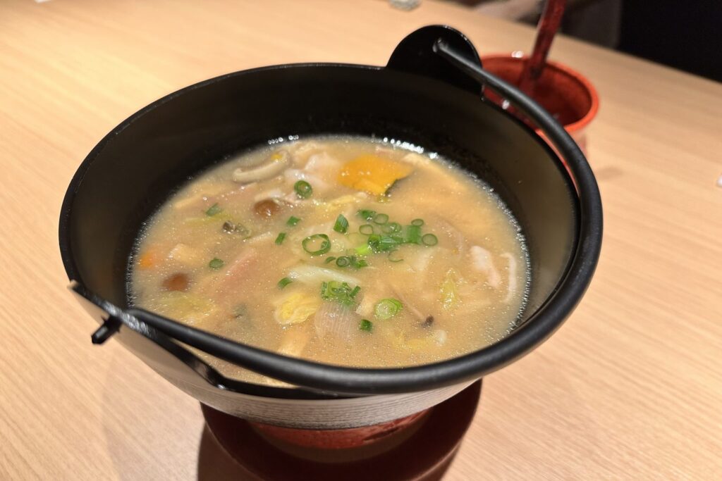 還有一道溫潤滋養的「乾燥蔬菜與豬肉味噌鍋」,為剛甦醒的身體帶來滿滿的暖意與能量。
