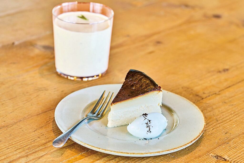 這間咖啡廳改建自屋齡 95 年的舊製材公司辦公室,已被指定為加茂市的「有形文化財」。從大門、窗框到玻璃,全都保留了昭和初期的原貌,店內散發著一股穿梭時空般的厚實歷史感。店內的招牌甜點包括口感濃郁滑順的「自製巴斯克乳酪蛋糕」(600日圓),以及將經過長期低溫熟成的地瓜細火蒸烤出的「蜜烤地瓜布蕾」(600日圓)。感受完室內優雅的氛圍後,我們也推薦帶上一杯咖啡,沿著平緩流淌的加茂川享受散步時光。
