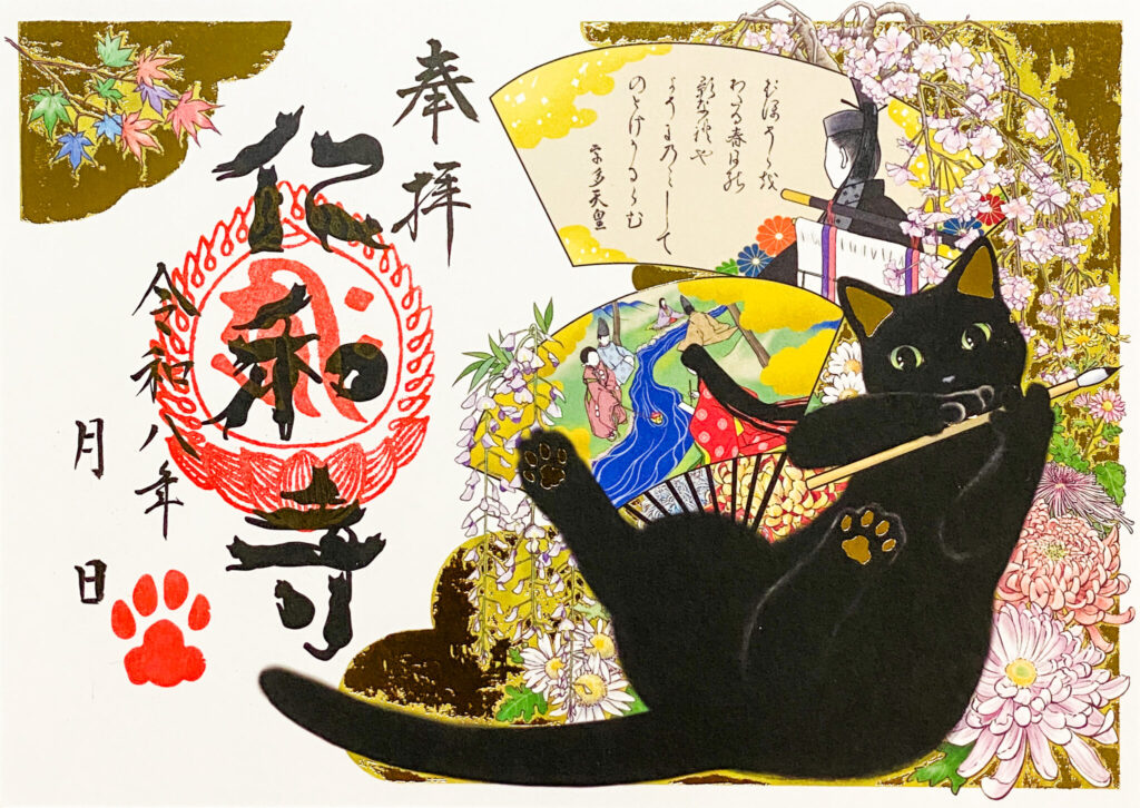 令和八年的特別御朱印《和歌與黑貓》將在1月1日開始授予。這枚朱印以宇多天皇的和歌為主題。上方扇面寫有其所作和歌,描繪春日陽光般的意境,並與黑貓形象相呼應。