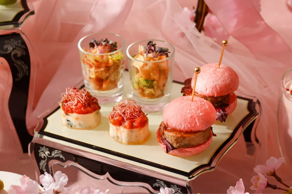 集結多款帶有淡雅櫻花香氣的精緻甜點,以及融入春季繽紛食材的鹹點。粉嫩的櫻色甜品與充滿春意的鹹點交織呈現,為餐桌增添優雅風景,讓人透過視覺、嗅覺與味覺細細感受春天的到來。