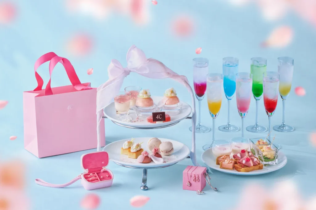 Anniversaire Café 橫濱港未來店攜手日本知名珠寶品牌 4℃ 推出期間限定聯名企劃SAKURA Sweets Collection。活動期間除常規菜單外,特別以 4℃ 每年人氣極高的「SAKURA Collection」2026年全新珠寶系列為靈感,打造限定版下午茶,以及3款甜點與4款飲品。