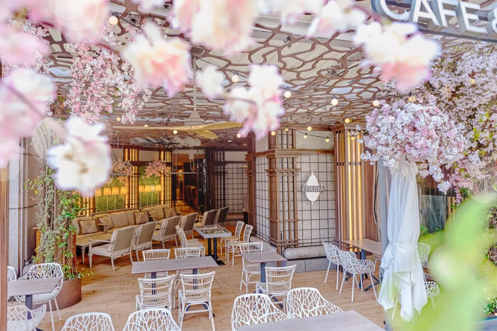 庭園中百株櫻花環繞,櫻花與草莓甜點相互映襯,搭配季節限定甜點讓視覺與味覺皆沉醉。