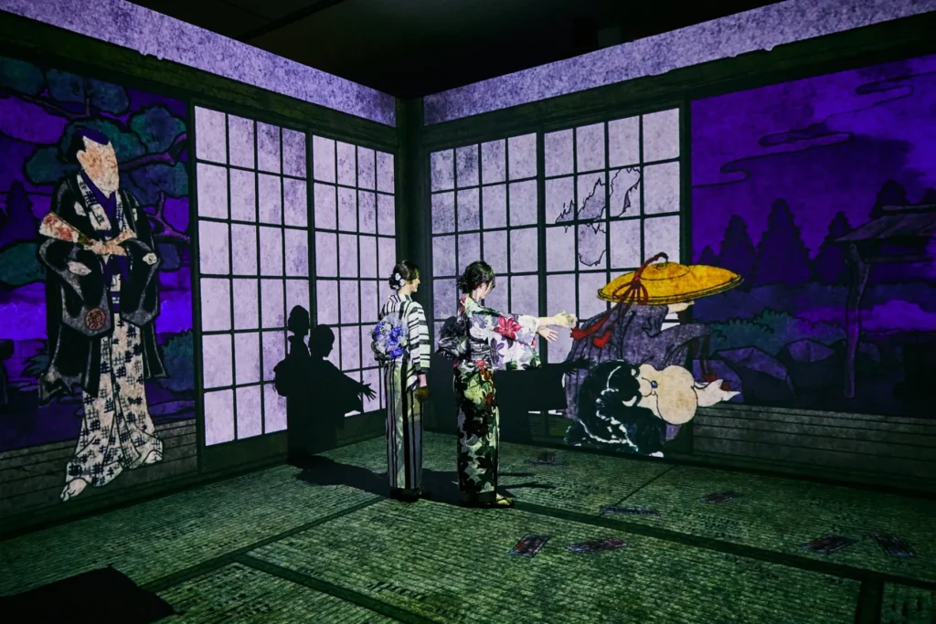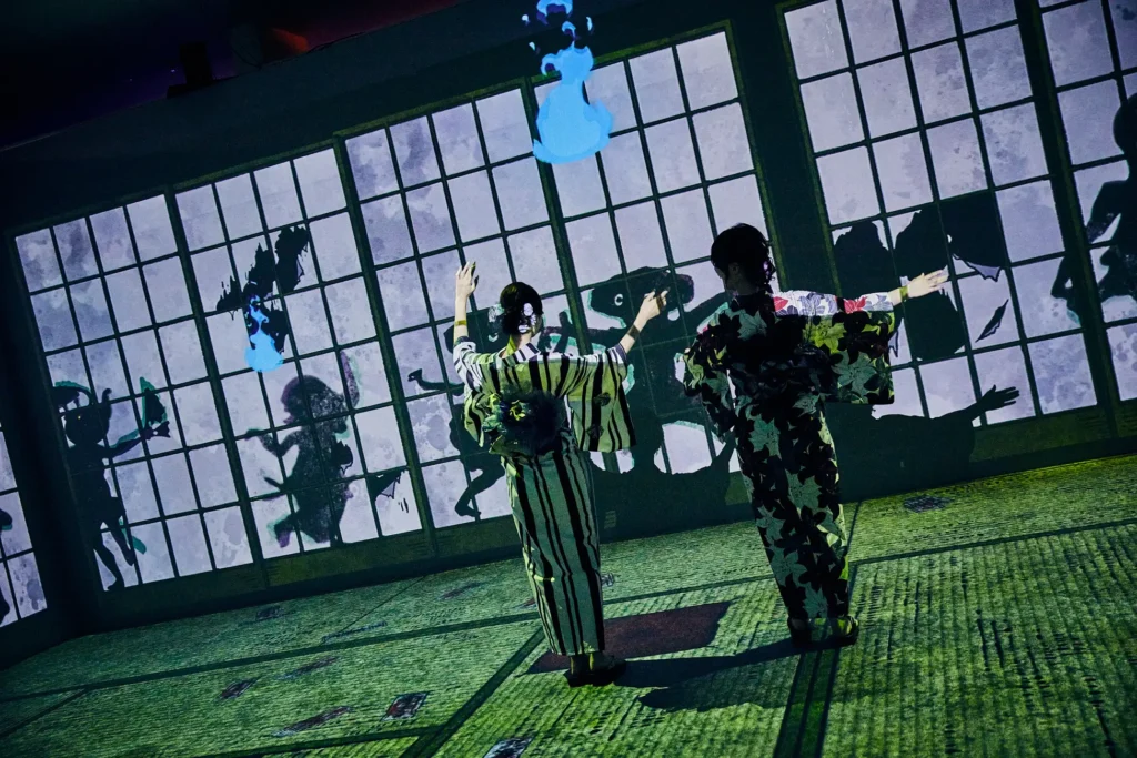 運用3DCG、投影映射與全像投影螢幕等最先端技術,打造出立體且充滿動感的影像空間,讓妖怪們在眼前栩栩如生地躍動。觀眾不僅是單純欣賞,更能與妖怪一同拍攝照片與影片,甚至化身為妖怪繪卷中的角色,彷彿誤入異世界般,享受前所未有的沉浸式體驗。