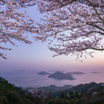 【瀨戶內海藍與櫻粉色的視覺碰撞】 紫雲出山標高352公尺,是一座能一覽瀨戶內海絕景的知名山峰。沿著綠意盎然的自然步道緩步登頂,眼前豁然展開的是令人屏息的壯闊海景。山頂展望台被譽為縣內數一數二的觀景名所,天氣晴朗時,甚至可遠眺瀨戶大橋與中國地方,視野遼闊開闊。向東望去,是島嶼星羅棋布的多島之美;向西遠眺,則是幾乎沒有島影的靜謐海面,景色對比鮮明。半島起伏的地形與漂浮於瀨戶內海上的大小島嶼,共同構成一幅寧靜而深遠的風景畫。