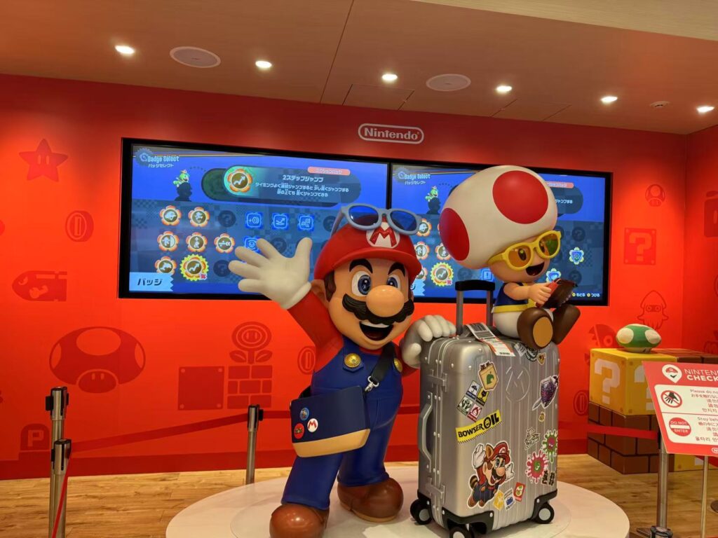 成田機場第一航廈(T1)設有 Nintendo Check In 體驗空間,由任天堂官方打造,旅客可以在候機時免費試玩 Nintendo Switch 遊戲,並在馬里奧等任天堂角色主題佈置中拍照留念。