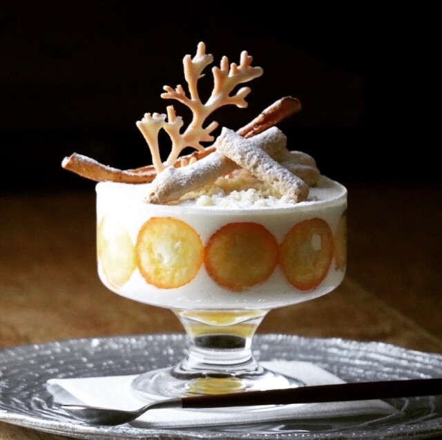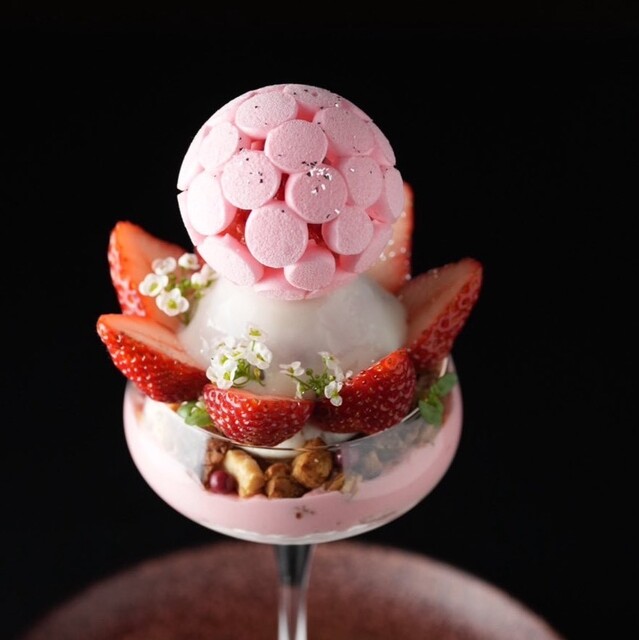 這裡的芭菲常常以季節為主題,名字、造型、結構都帶有明顯的「作品感」,甚至有點像在看一件甜點展覽。
