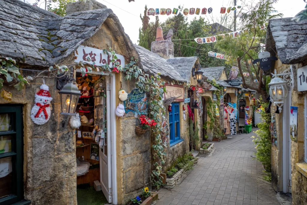 花卉村:走進花卉村,彷彿來到一座童話小村落。 石造小屋、花草裝飾與色彩溫暖的店鋪,讓整個空間充滿柔和而輕鬆的氛圍。