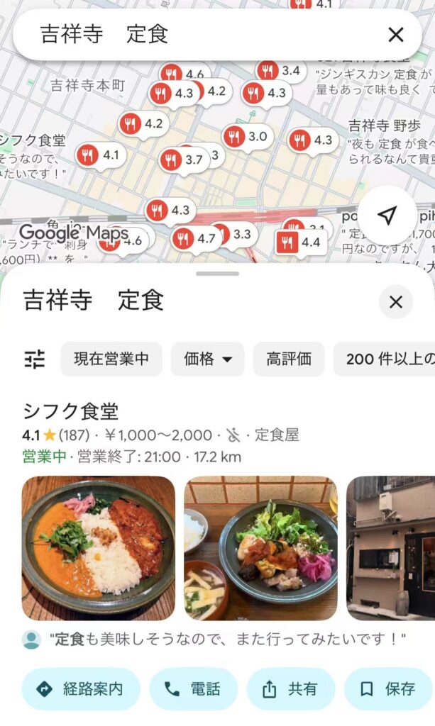 打開 Google Maps 或 Tabelog 時,可以先不要輸入具體料理,而是:放大某個區域(例如一個車站周邊),直接看餐廳分布。