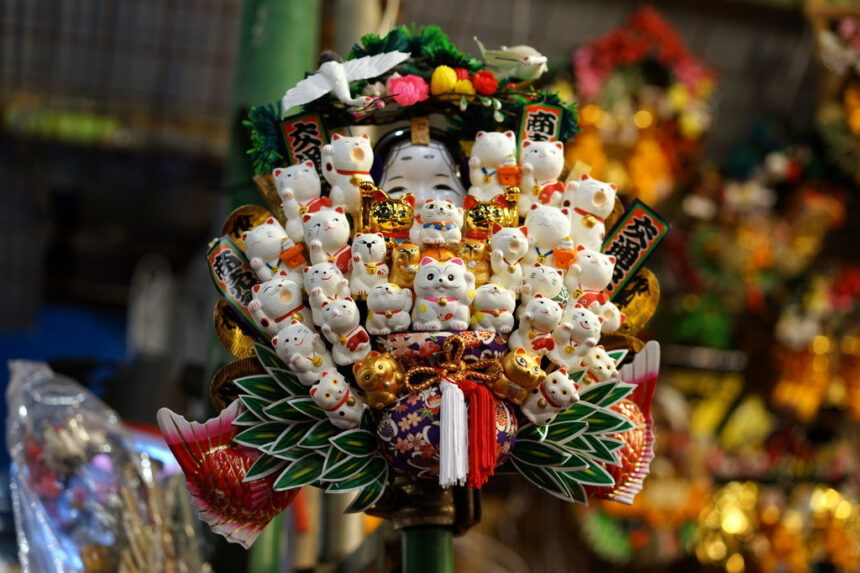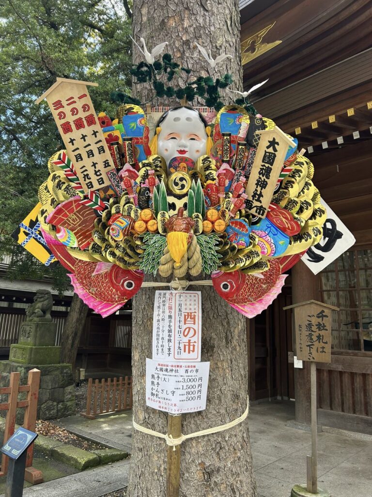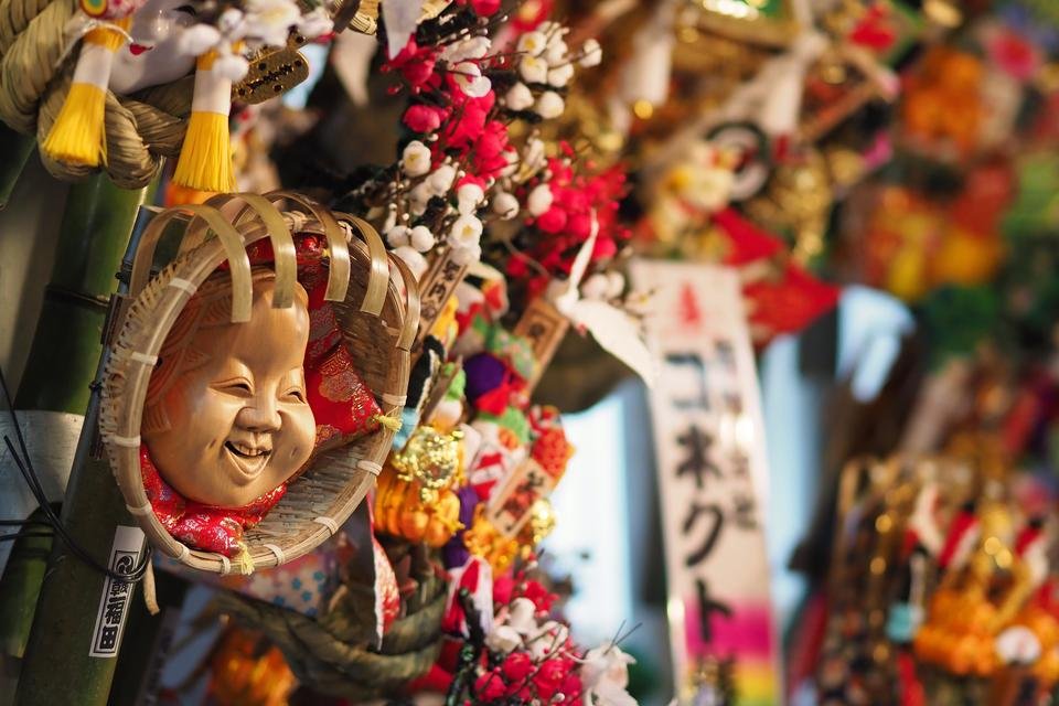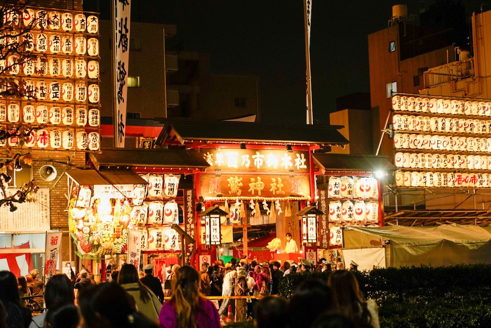 每年11月,在關東地區的神社和寺廟都會舉辦一個傳統活動——酉市。很多人前來祈求新年好運和生意興隆。許多人會購買被稱為“熊手”的吉祥之物,這已經成為秋季的一道風景線。